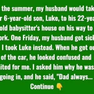 When we arrived, I expected Luke to jump out of the car and head straight inside as usual. But instead, he paused, looking puzzled as he stared at the house. I asked if something was wrong, wondering if he’d forgotten something or was just taking his time. Then, Luke looked at me and said, “Dad always comes in with me. He stays with the babysitter for a while, and I go play alone in the playroom.”