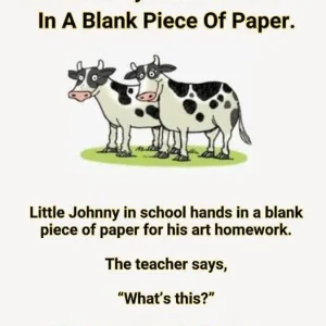 Little Johnny at school submits a blank piece of paper for his art homework. The teacher says: “What’s this?” Little Johnny says, “A picture of a cow eating grass.” The teacher inquires, “Where’s the grass?”