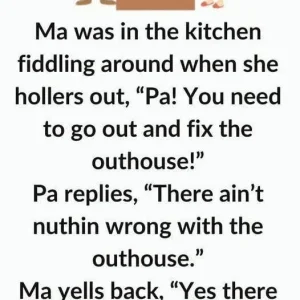 Ma was in the kitchen fiddling around when she hollers out, “Pa! You need to go out and fix the outhouse!”