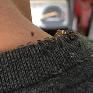 In the video, lice can be seen crawling across the back of the driver’s neck and onto his shirt, showcasing an extreme case of infestation.