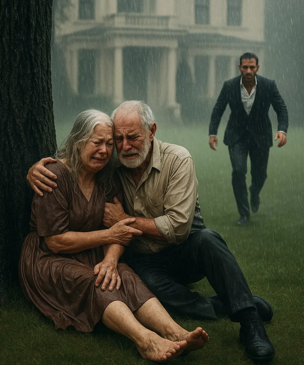Hours later, his car rolled into the muddy village streets he once knew. But the bright new house he expected wasn’t there. Instead, the same old wooden home stood, worn and sagging from years of rain. Then, in the middle of the storm, he saw them — his parents standing in the rain, surrounded by soaked furniture, their possessions piled on the road.