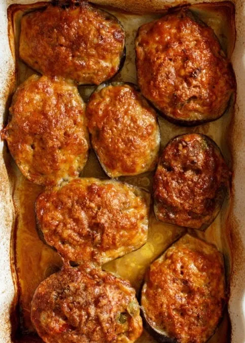 Bake: Return the stuffed eggplant boats to the oven and bake for 20-25 minutes until tender.