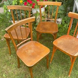 These wooden chairs had been at our parents’ home for years . Although they appeared plain and worn out, their structure and solidity remained intact . My brother and I decided to give them new life by renovating them ourselves, and this is the end outcome. Four wooden chairs sat in a corner of our family room, previously covered in faded varnish and marked by time, waiting for a new life.