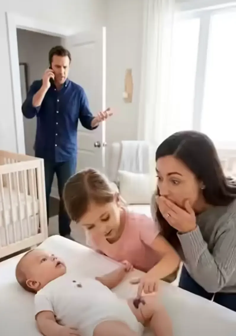 The evening was calm at first, soft jazz in the background, my husband James working in the study, my older daughter Lila nearby, and Emery dozing in the bassinet like a promise. Around eight she spit up enough to soak her onesie, so I carried her to the nursery we kept ready for her visits, the room warm with lavender and baby powder. I laid her on the changing table, murmured silly comforts, and unzipped the damp fabric, expecting nothing but the usual mess. When the cloth peeled back, the world stopped. Dark bruises bloomed across her tiny ribcage, deep purples and mottled blues shaped with terrifying precision, spaced like fingerprints, not a bump, not a slip, not anything accidental. My throat locked around a scream, my mind scrambling for an innocent explanation that would let me breathe, but the truth sat there in silence, undeniable. I called James and when he rushed in and saw her, his face went gray, his hand hovering over her skin as if even touching her might add to the harm already done.