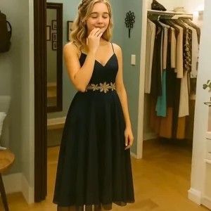I thought about the long nights I’d spent stitching the midnight-blue satin. The tiny beads Lily picked out that I sewed on one by one. I remembered her giggling as we pinned the hem. It wasn’t just a dress; it was ours.