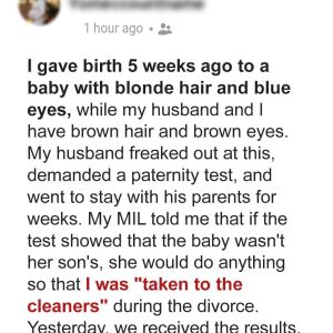 My MIL Mrs. Johnson told me that if the test showed that the baby wasn’t her son’s, she would do anything so that I was “taken to the cleaners” during the divorce.