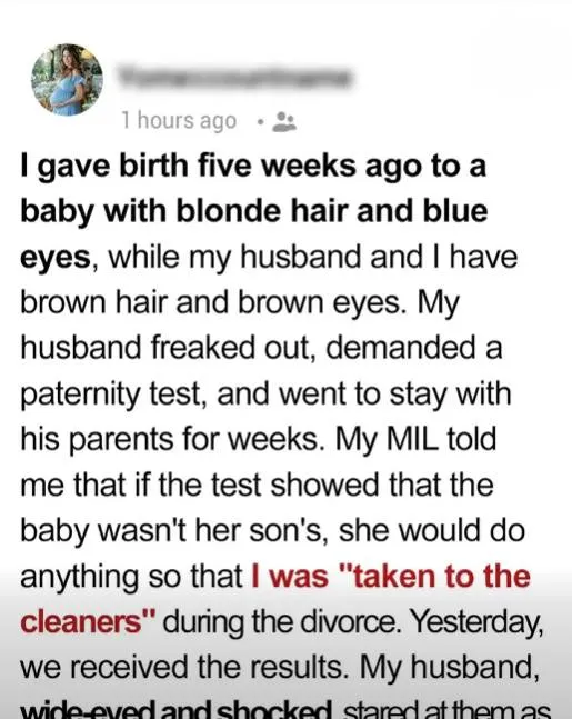 The sting of betrayal cut deep. I had just given life to our child, endured months of exhaustion and pain, only to be accused of infidelity. My protests meant nothing to him. He insisted on a paternity test, his voice cold and sharp, and within days he packed his things and moved back in with his parents. I was left alone with a newborn, my heart breaking with every hour that passed.