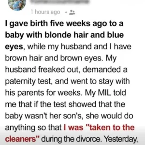 When I held my daughter Sarah for the first time, the world seemed to pause. Her tiny fingers curled around mine, her skin soft and new, and for a brief moment, I thought nothing could touch the joy flooding through me. But then I saw the look on my husband Alex’s face. Instead of pride or wonder, his eyes narrowed. He stared at her blonde hair and startling blue eyes and said words that would haunt me forever: “She doesn’t look like me. Who’s the father?”