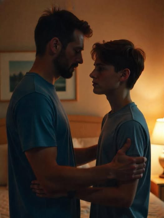 Ryan and Jeffrey stood face-to-face, tension thick in the air. The music was muted this time, barely audible. Jeffrey reached into his back pocket, pulled out a wrinkled envelope, and handed it to Ryan. The boy looked wary as he opened it. Whatever he read made him drop to the bed in shock.