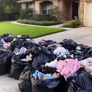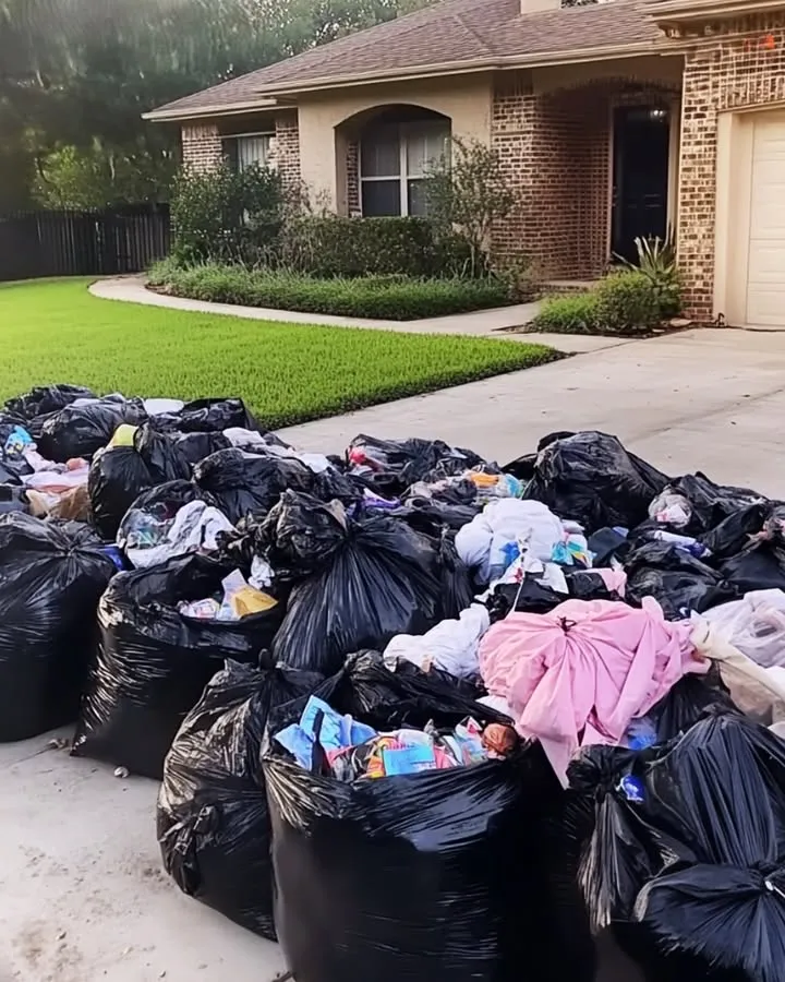 Our belongings—clothes, toys, photo albums—were piled on the curb in black trash bags.