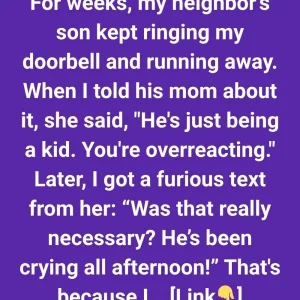 For weeks, my neighbor’s son maintained ringing my doorbell and running away. When I told his mom about it, she said, “He’s just being a boy. You’re overreacting.”