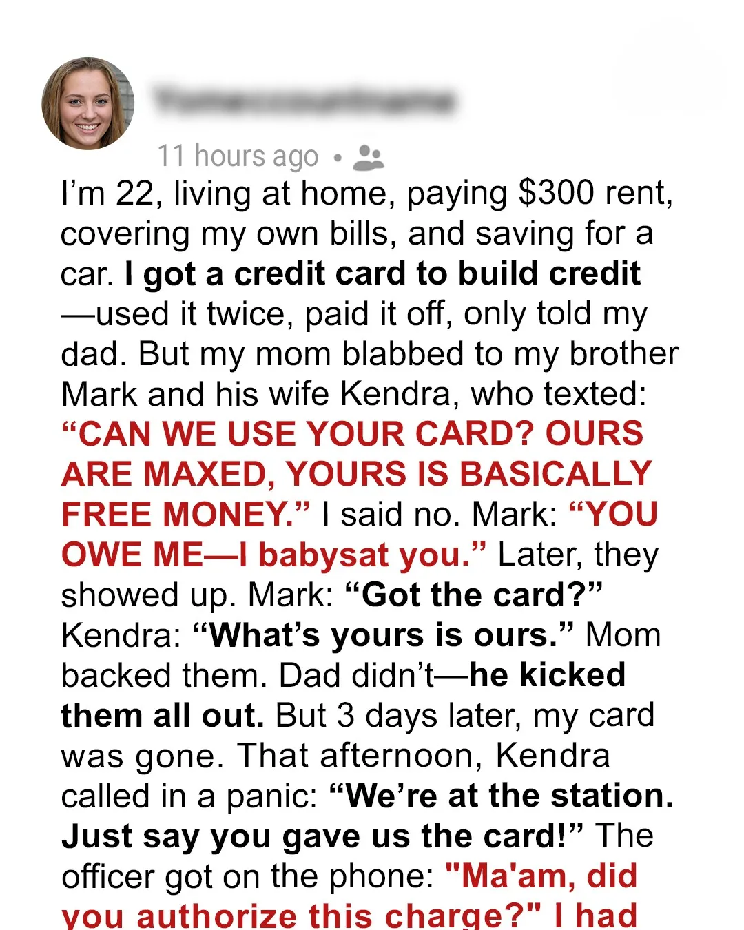 When I got my first credit card, I thought I was making a quiet, responsible move toward adulthood. What I didn’t realize was that someone in my family would see that small piece of plastic not as a tool—but as an opportunity.