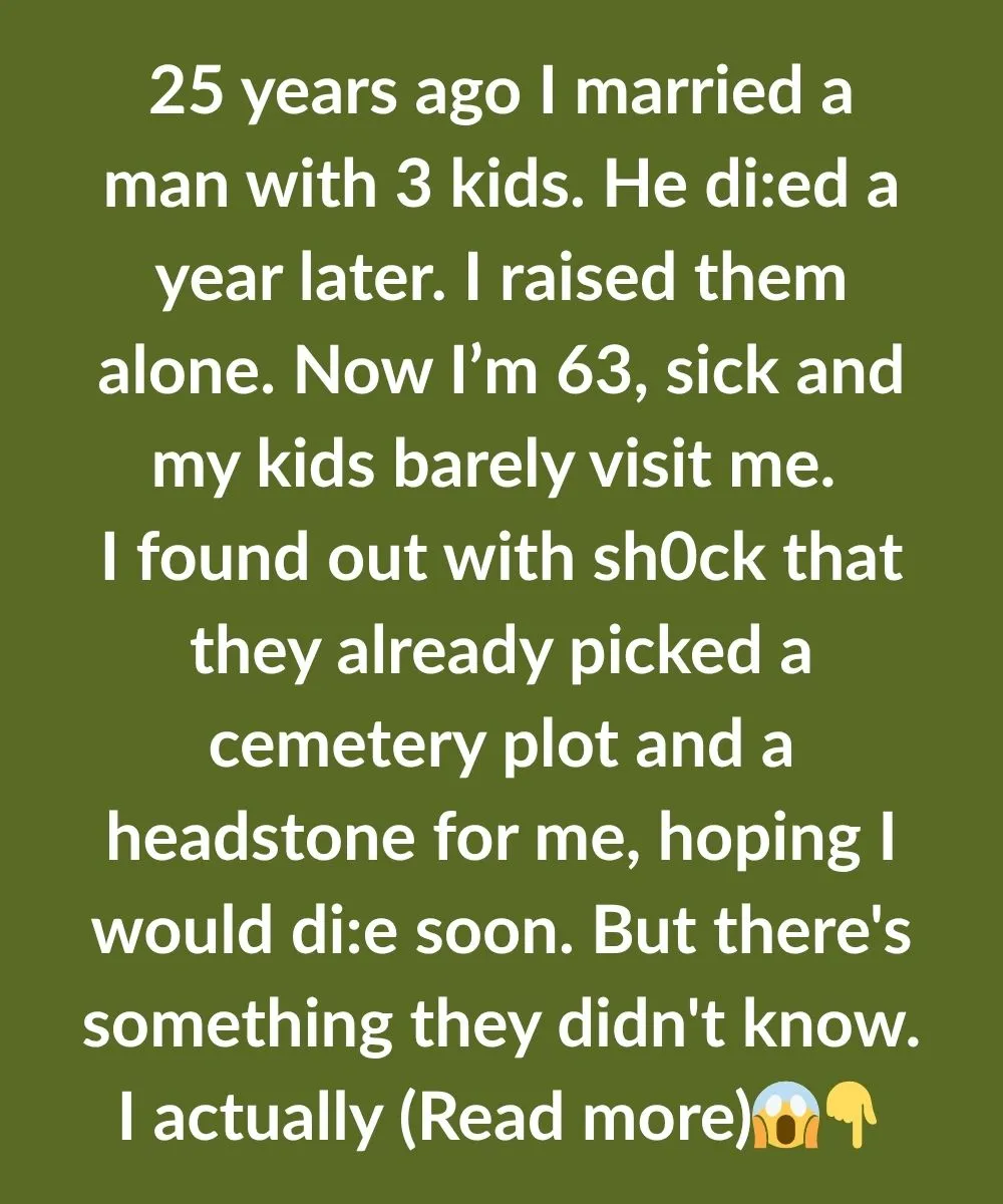 I chose not to notify my stepchildren. I let them continue playing their little game of seeming to care and throwing clues about’making peace,’ while secretly scheming to divide my estate. Then came my ‘d3ath.’