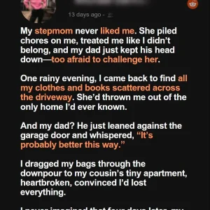 Standing next to him was my stepmom, Rina, her face twisted in anger. I almost didn’t open the door, but I wanted answers.
