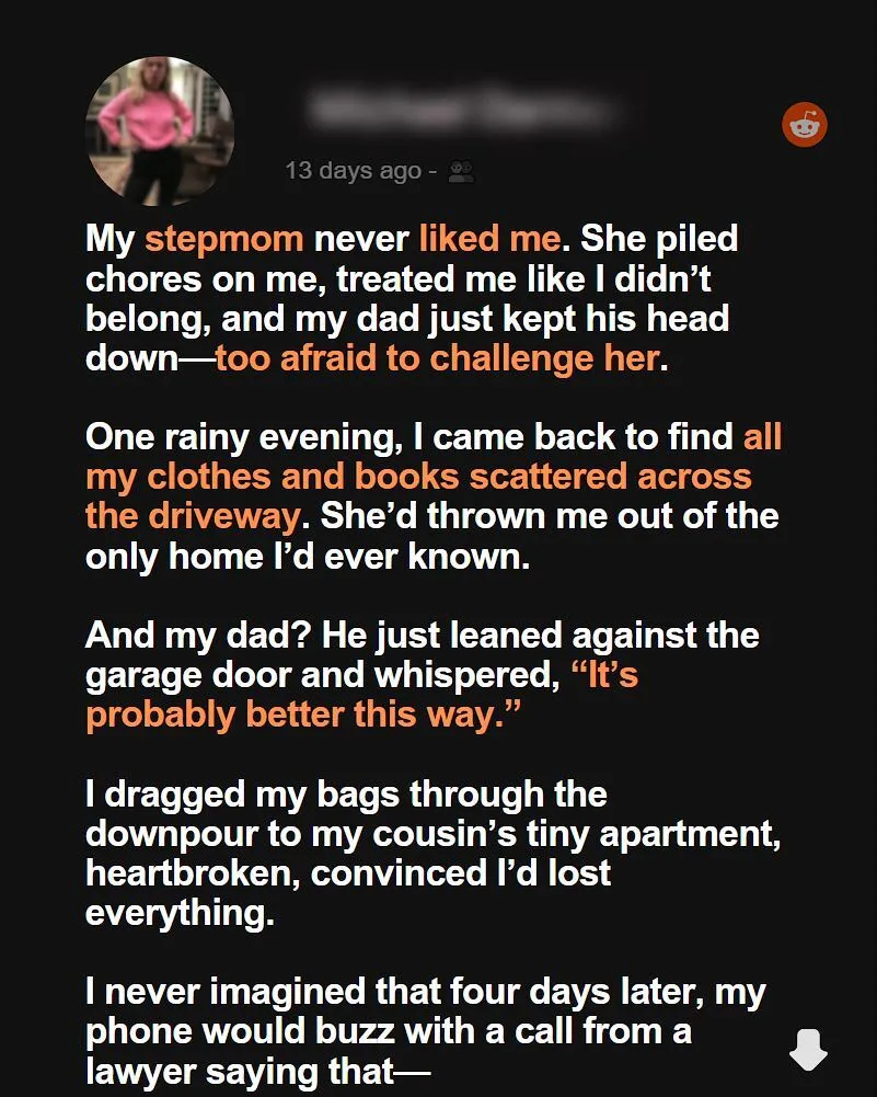 My stepmom never liked me. She dumped chores on me, made me feel like a burden, and my dad just stayed quiet—too scared to stand up to her.
