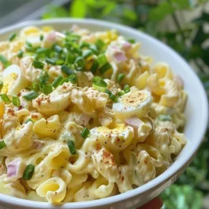 This Deviled Egg Pasta Salad is a delightful combination of two favorites! It features the creamy, tangy flavors of deviled eggs in a classic pasta salad base. It’s perfect for potlucks, picnics, or a side dish for any summer gathering.