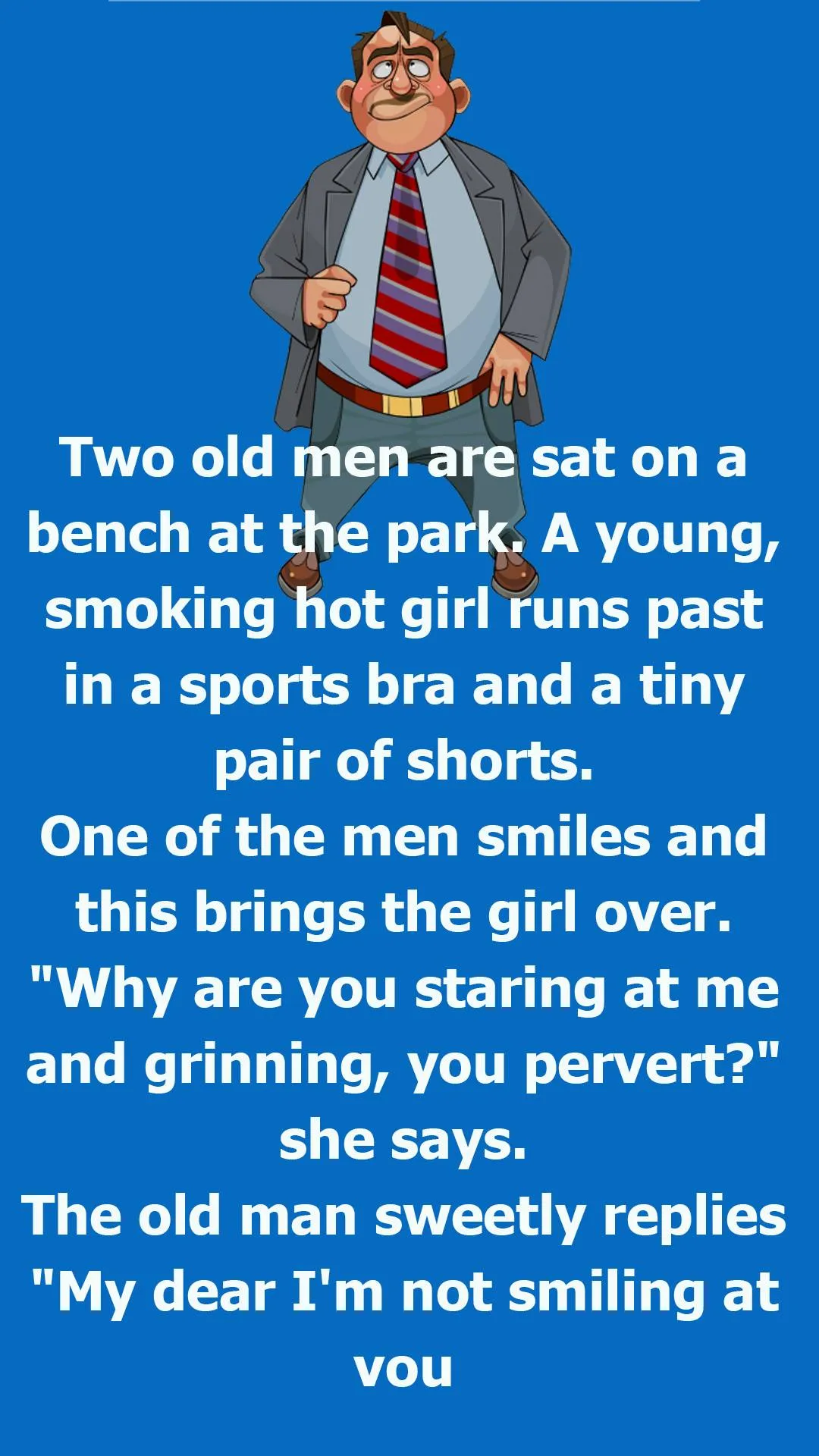 One of the men smiles, and the girl comes over, asking, “Why are you grinning at me, you creep?” The old man replies kindly, “I’m not smiling at you, I’m smiling because no matter how tough life gets, seeing pretty young girls in summer always makes an old man feel better.”