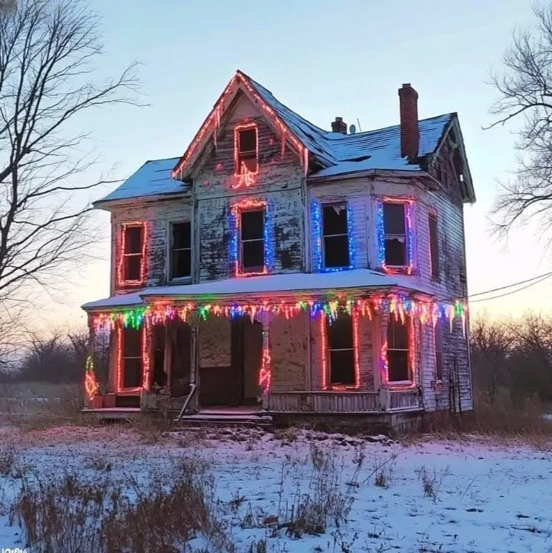 There was a faded wreath with little bells, which hung crookedly on the front door. There were the familiar plastic candy canes lining the path to the house.