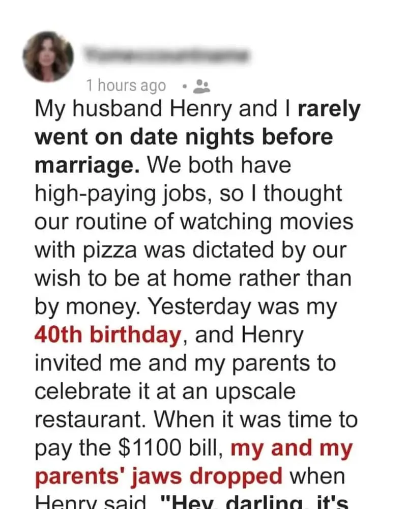 When it was time to pay the $1100 bill, my and my parents’ jaws dropped when Henry said “Hey darling! It’s your birthday, so I thought you’d want to pay. I didn’t bring my wallet with me.”