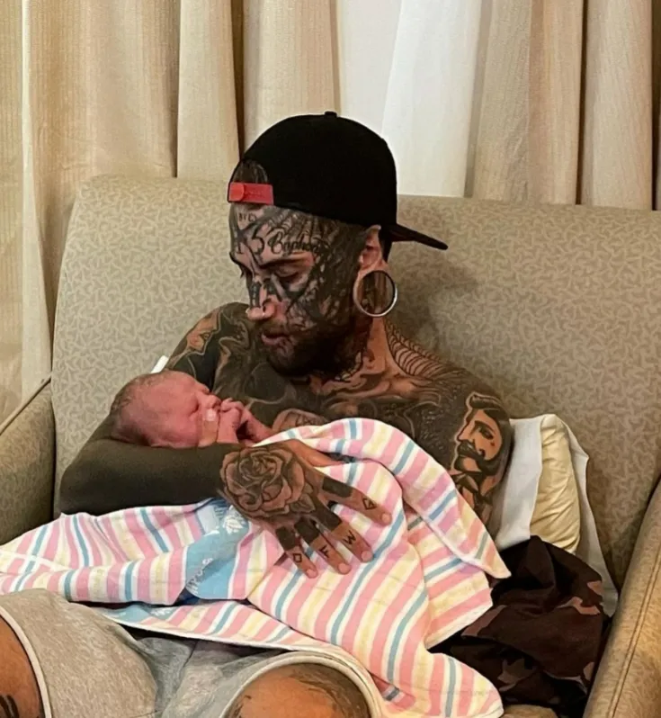 One cute thing after another: a 24-year-old man with a lot of tattoos gets rid of them for his daughter.