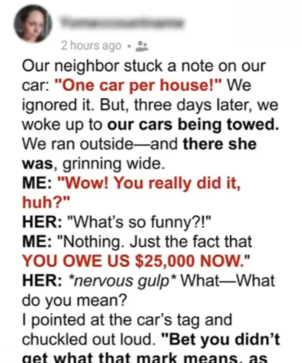 Our Neighbor Had Our Cars Illegally Towed — She Never Expected the Government to Show Up