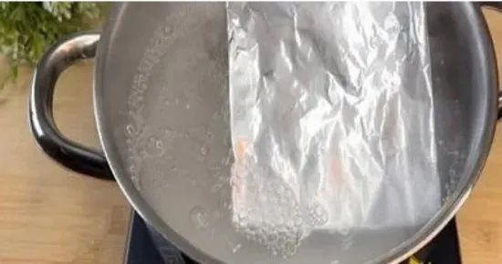 In response to this common woe, an ingenious method emerges, utilizing the transformative power of aluminum foil. The process begins by heating water in a pot, to which a spoon of sodium bicarbonate and half a spoon of sugar are added.