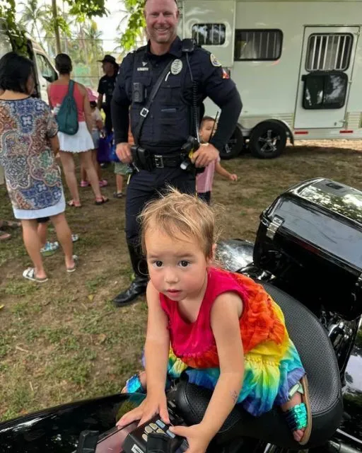 She wandered right up to the police bike, climbed on like she’d done it a hundred times, and started playing with the controls. One of the officers nearby chuckled and asked where her mom or dad was. She didn’t answer—just stared up at him wide-eyed, like she wasn’t sure whether to smile or run.