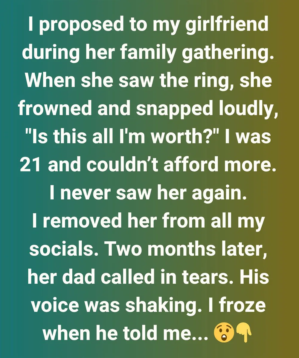Years later, I realized that night had taught me something valuable: real love isn’t measured by the price of a ring, but by the respect and kindness shared in difficult moments.