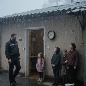 A woman named Katya stood at the door. Soaked, frozen, with three children behind her. Her husband had passed away six months earlier at a construction site.
