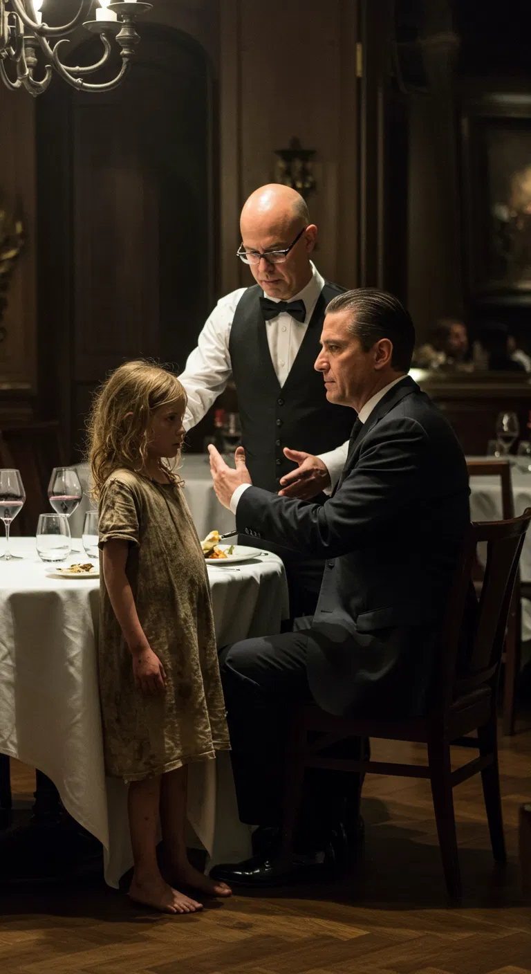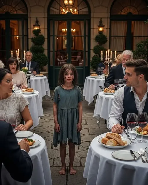 It wasn’t a waiter. It was a child. Barefoot. Probably 11 or 12. Her hoodie was torn, her jeans crusted with old dirt, and her eyes wide with cautious desperation.