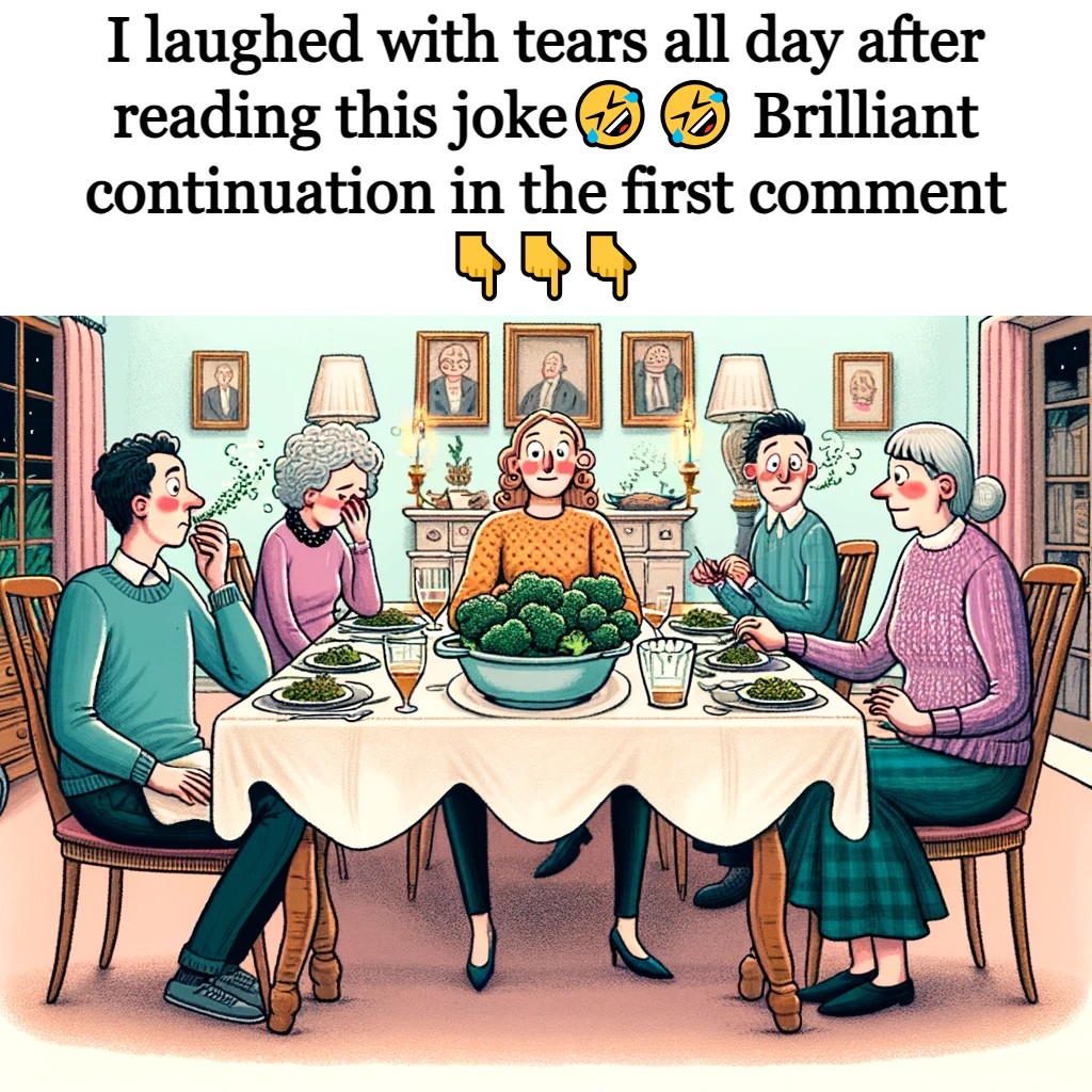 The woman is beginning to feel a little discomfort, thanks to her nervousness and the broccoli casserole. The gas pains are almost making her eyes water. Left with no other choice, she decides to relieve herself a bit and lets out a dainty fart.