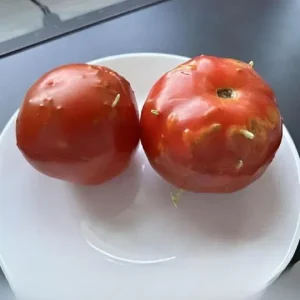 These insects burrow into the flesh of tomatoes, leaving behind visible marks like the ones we see here.