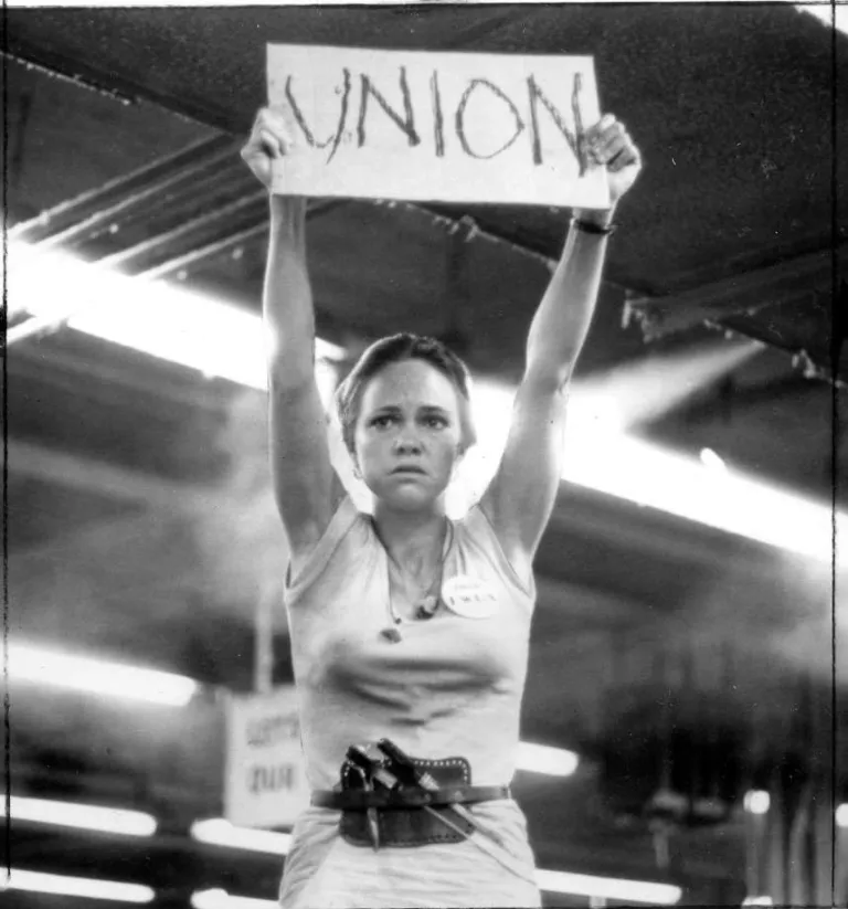 One of the most famous moments in the film—where Norma Rae stands on a table holding a sign that says “UNION”—was inspired by a real event. Sutton had done the exact same thing in her fight to organize textile workers.