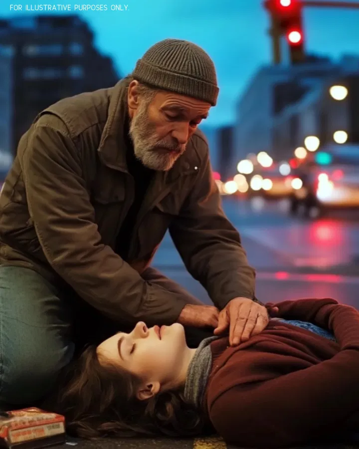 He lunged into action. Though he took a blow to the head, he managed to wrestle the purse back. When he returned, Victoria lay motionless. Gently, he placed his worn-out coat beneath her and called for help, his bruised face calm and unwavering in the storm.