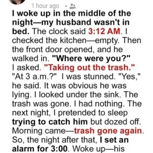 It started subtly. I’d wake up to find his side of the bed empty, the sheets cool to the touch. When questioned, Dave would casually mention taking out the trash. But in all our years together, he had never shown such initiative, especially not in the dead of night.