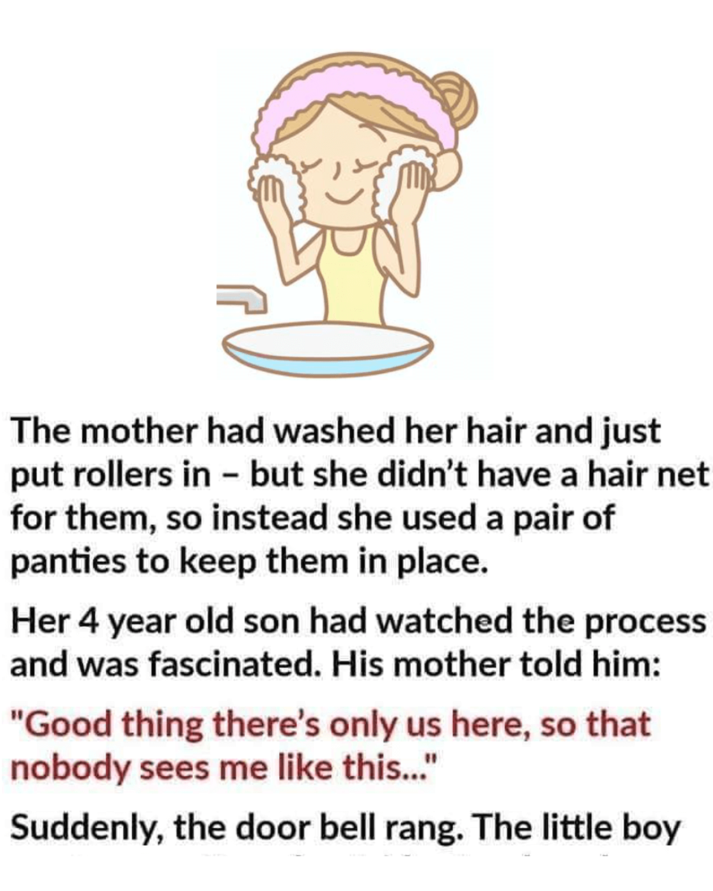 The mother had washed her hair and just put rollers in – but she didn’t have a hair net for them, so instead she used a pair of panties to keep them in place