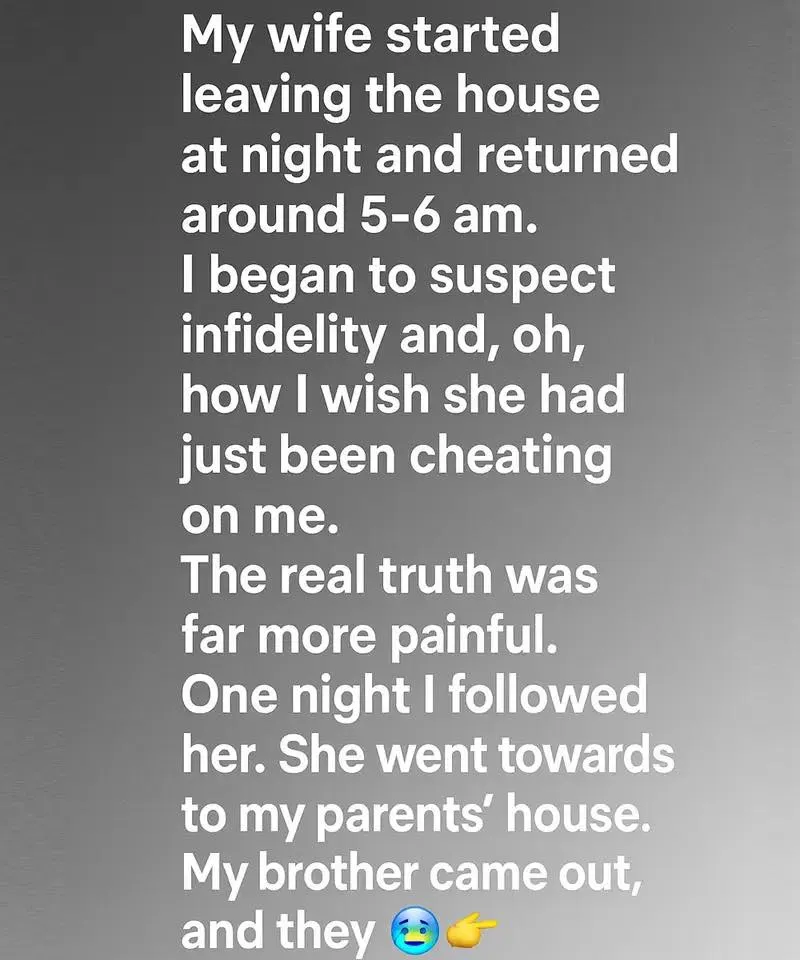 I started to fear the worst—infidelity.One night, unable to stand the torment any longer, I decided to follow her.