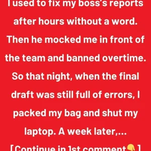 I used to fix my boss’s reports after hours without a word. Then he mocked me in front of the team and banned overtime. So that night, when the final draft was still full of errors, I packed my bag and shut my laptop. A week later, he stood there stuttering in the boardroom while the executives looked at the mess on the big screen.