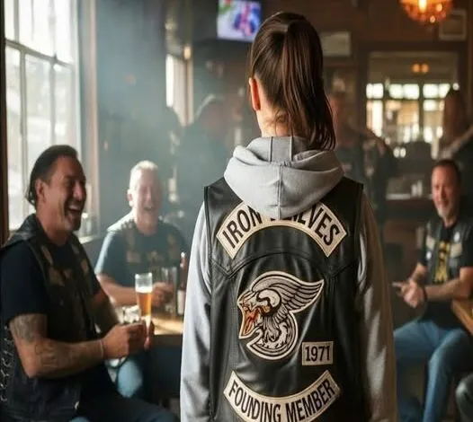 When seventeen-year-old Cassie stepped into Rusty’s Bar — a place thick with smoke, leather, and the kind of silence that follows danger — she looked wildly out of place. Five feet tall, clutching a notebook instead of a beer, she barely made it two steps in before the bikers’ laughter rose around her like a wall. To them, she was just a kid. A curiosity. A mistake. But what they didn’t know was that Cassie carried a story stitched into her heart — and a legacy stitched onto the back of a jacket that would soon silence an entire room.