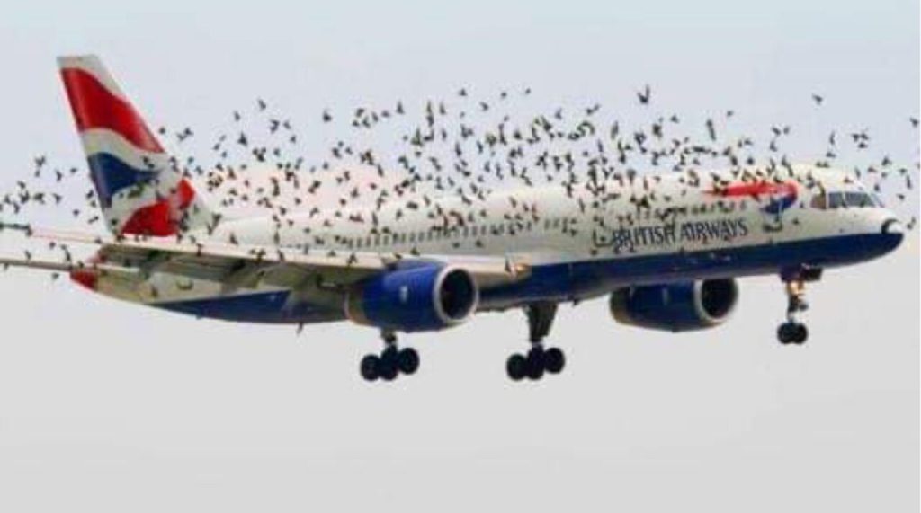 During a recent flight, Jason found himself in a sudden attack by a massive group of birds. These birds were causing loud noises by hitting the plane’s windows.