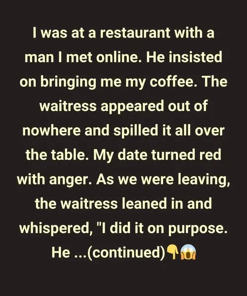 The waitress whispered, “I did it on purpose,” as we were leaving. He was unfaithful to you. I stared at her, perplexed and shocked. “Earlier, I caught him flirting with another woman,” she added.