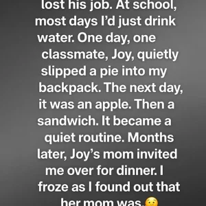 “It was you,” I whispered, looking at Joy’s mom with wide eyes. She smiled softly and said, “Joy told me you sometimes skipped lunch. I didn’t want you to go hungry, sweetheart.”