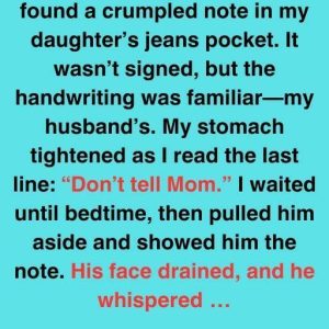 It started with laundry. A crumpled note in the pocket of my daughter’s jeans—unsigned, but unmistakably written in my husband’s handwriting. The last line stopped me cold: