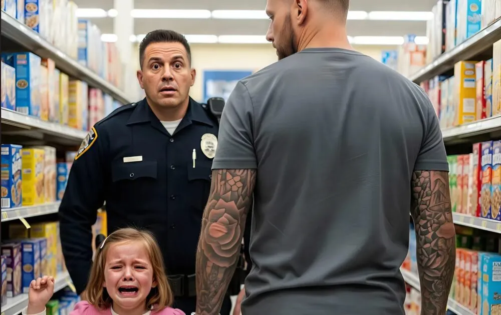 I stepped forward just as he shifted his stance, placing myself between him and the exit. “Sir,” I said evenly, “I need to speak with you.” His grip tightened on the girl’s wrist, but she reacted first—darting toward a nearby shopper the instant his attention flickered. He lunged after her, but training took over; I grabbed him, brought him down, and held him pinned to the floor as carts skidded away and startled customers backed up in a rush of shouts and gasps. Backup arrived moments later, officers swarming in to take him into custody while the girl clung to the customer who had caught her.