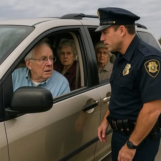 The officer glanced around the van and noticed the elderly passengers looking extremely tense—stiff as boards and pale as ghosts.