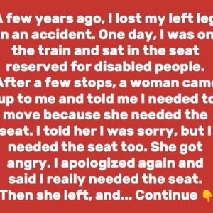 I glanced at her, startled. Trying to remain calm, I apologized and explained that I also needed the seat. I even pointed out my prosthetic leg, hoping she’d understand.