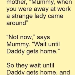 Mummy glares at him and mutters, “Don’t push your luck.”