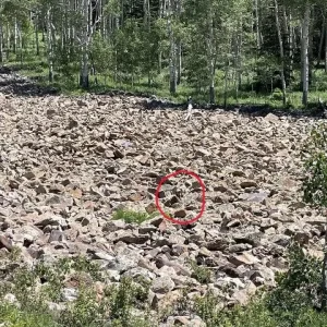In this optical illusion, a serene natural scene hides a camouflaged woman. At first glance, it seems like an ordinary landscape of trees and rocks. But look closely—can you spot her?