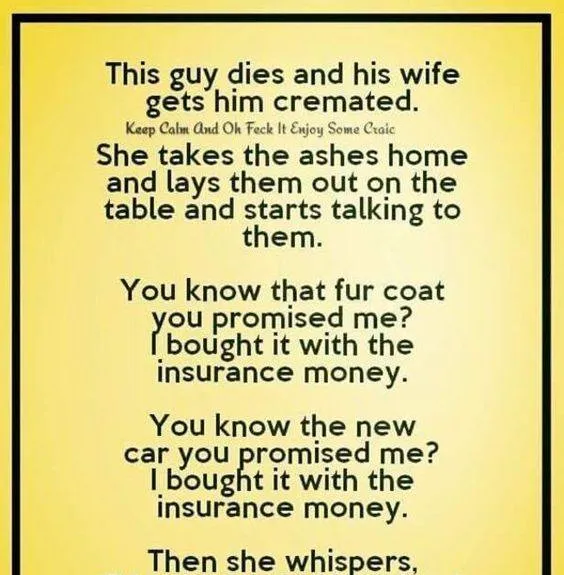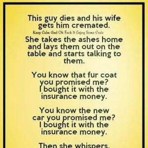 This guy dies and his wife gets him cremated.