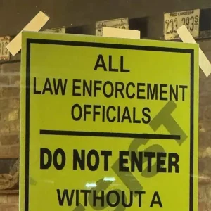 So why the controversial sign? DiGrazia explained it’s a response to concerns about unwarranted visits from officers: “If somebody comes here with a signed warrant and they’re conducting official police or law enforcement business, they’re completely welcome.” The message echoes signs handed out by local non-profits in response to increased immigration enforcement.